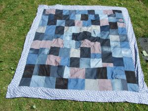 It’s not very expertly done. The binding doesn’t quite lie flat along one edge, because it twisted while I was sewing it. (Note to self: trying to get away with using as few pins as possible doesn’t pay off) It’s not a beautiful pattern or an ornate layout. But I’m pleased, all the same.